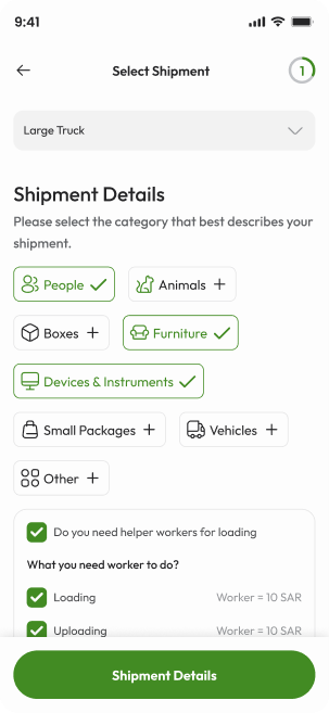 حدد المركبة المناسبة لشحنتك