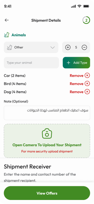 أدخل معلومات الشحنة والوجهة